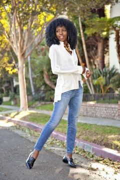 Uma ótima opção para deixar o seu look menos formal é combinar a camisa de seda com um jeans. “O jeans funciona como um curinga, combinando com todos os tipos de camisas. Para deixar o look com cara de moderno, use sua camisa de seda com um scarpin, um belo acessório e você vai ficar com um look chique e casual!”, aposta a personal stylist.