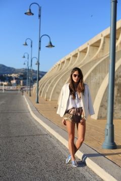 O shorts, apesar de parecer uma combinação improvável com a camisa de seda, pode criar looks maravilhosos. Opções de shorts mais chiques, como com aplicações ou em tecidos mais finos, ajudam a não deixar o visual tão casual. Uma dica interessante é fazer o conjunto, combinando a estampa do shorts com a camisa de seda.