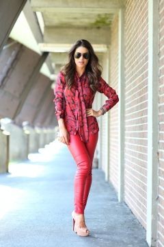 Se sua ideia é usar uma calça mais formal, como os modelo flare em couro, para usar em locais mais descontraídos, use com camisa de seda colorida ou estampada. Uma calça estampada também pode ser uma ótima opção para criar um visual menos formal com as peças.
